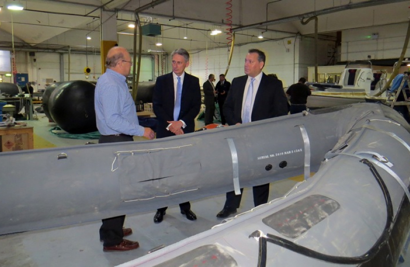 David Warburton, Conservative Parliamentary Candidate for Somerton and Frome, today invited the Rt Hon. Philip Hammond MP, Secretary of State for Defence, to visit the successful local business Henshaw Inflatables, a world-leader in providing RIB (Rigid Inflatable Boats) to military facilities worldwide.
