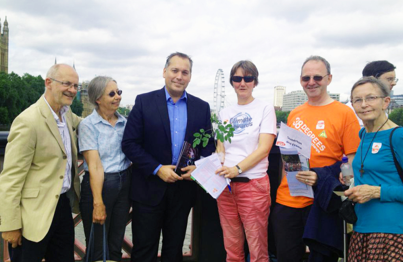 Campaigners from Somerset took the opportunity to urge David Warburton MP to do all he can in this Parliament to promote cleaner, safer power, to ensure the protection of nature and natural resources and to safeguard the poorest nations of the world from the negative effects of climate change.
