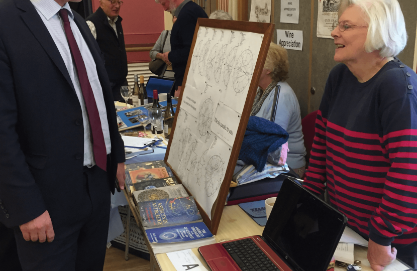 Marcus was impressed with the drive and commitment of the members showing their own skills on the day, "The voluntary work that U3A are doing is incredible to offer support and eduction to other people in a similar situation - it undoubtedly stops loneliness and keeps minds active. I have seen learning groups today around art, rambling, natural history, science, languages, badminton to name but a few. Perhaps the most interesting was to be told by Margaret Hewson that the Election results were written in the stars!"