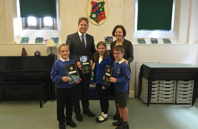 Marcus was impressed with the film, and was pleased to present the certificates to George, Charlotte and Brandon. Marcus was also give a full tour of the school by the Headteacher Christine Maxwell, including attending the daily assembly. Marcus said "The film showed great skill and understanding of some of the issues facing the United Kingdom, with regards to farming and the environment. There is also a real commitment in the school to ensuring the children have fully grasped the 1st steps of democracy, I was honoured to present the badges to those elected to the School Council".