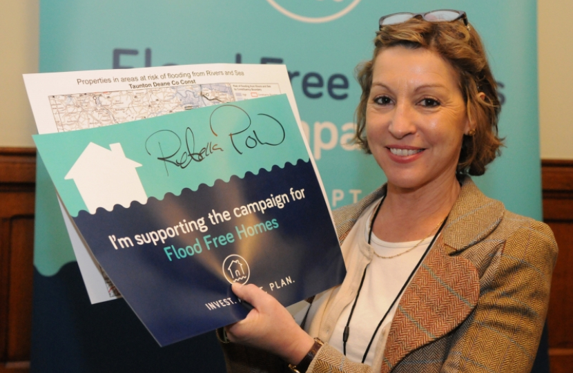 “I am supporting the campaign for Flood Free Homes which calls for effective management of our land and water. I know the devastating impact that flooding has had on the constituents of Taunton Deane and I want to make sure that home-owners and local businesses do not suffer from destructive floods in the future. We need ambitious long term solutions to ensure that our communities are protected.”