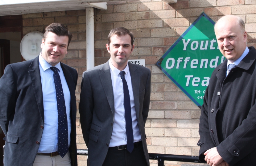James Heappey, the prospective Conservative MP for the Wells constituency, accompanied the Justice Secretary Chris Grayling in a visit to Street – to see the work of the Somerset Youth Offending Service in tackling crime.